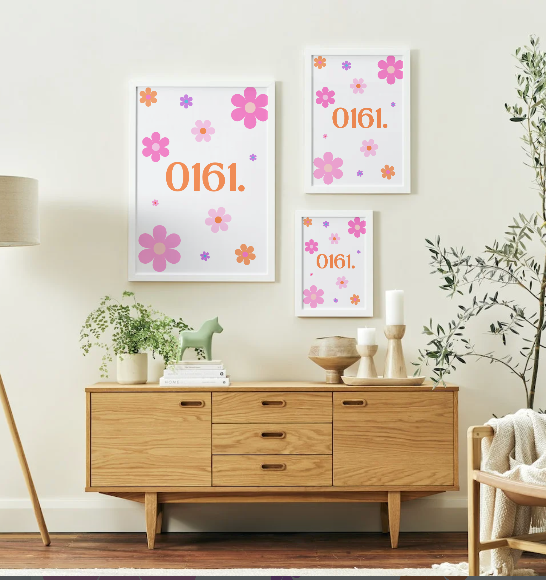 Add a pop of fun and pride to your space with this bold art print featuring playful girly flowers and the iconic "0161"—a nod to Manchester’s vibrant spirit. Bright and cheerful, it’s perfect for anyone proud to celebrate their Mancunian roots with a splash of floral flair.