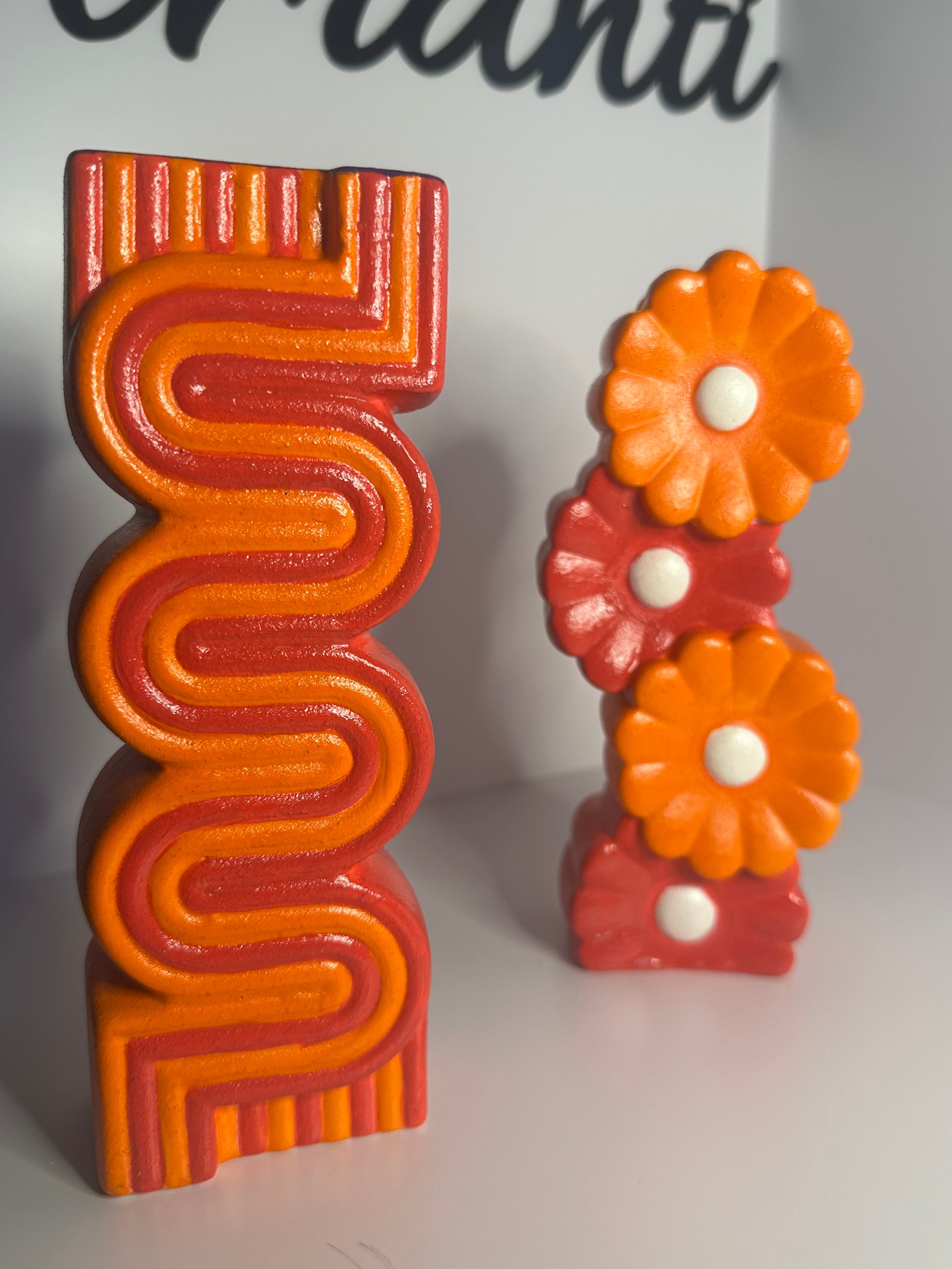 Hand-painted ceramics made to brighten your space and spark joy. Each piece is unique, bursting with playful colour, bold patterns, and a touch of retro flair. From checkered details to flowing waves and vibrant stripes, no two designs are ever the same — meaning you’ll always have something truly one-of-a-kind.